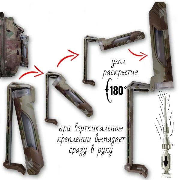 Защитный тубус двойной для шприц-тюбика и ампул molle (олива) - это двойной ударопрочный футляр для шприц тюбика, ампул и батареек с креплением на молле или ремень.Защитный футляр предназначен для защиты и переноски шприц-тюбика, ампул, батареек и прочих мелких предметов в походно-полевых условиях. Он подойдет для хранения важной мелочевки: денег, флешек, спичек с сигаретами, патрон и прочего, что надо защитить от ударов и осадков. Кейс выполнен в форме вертикальной колбы-футляра, которую можно крепить на поясной ремень или экипровку, в слоты molle. Колба оснащена системой быстрого открытия: достаточно подцепить застёжку снизу и потянуть тубус на себя. При этом, возможность случайного раскрытия сведена к минимуму: даже если вы случайно отстегнули крепление, во время, скажем, переползания, футляр останется на месте и автоматически защелкнется обратно под действием давления. Для того, чтобы из футляра что-то выпало, его надо развернуть практически вертикально (угол открытия составляет 180 градусов). Это крайне удобно при работе в объемной одежде или бронежилете: просто отстегните защелку, подставьте руку и проверните тубу вверх до полного открытия - содержимое упадет вам сразу в ладонь и не надо будет тратить время на его извлечение.Сбоку у тубусов имеется прозрачное окошко, через которое видно содержимое футляра. В стрессовой ситуации не нужно открывать тубус, чтобы посмотреть, осталось ли там что-то еще - достаточно просто посмотреть через прозрачную панель.Окошки имеются с обоих сторон тубуса - в ночное время суток можно подсветить одно и смотреть через другое. Вокруг них имеется текстурированная поверхность - благодаря ей, тубус не будет скользить в потных или влажных руках.Крышка имеет прорезиненное кольцо-уплотнитель, которое позволяет достичь повышенной защиты от полевых условий: пыль, грязь и дождь не повредят драгоценное содержимое.Широкая планка крепления позволяет осуществлять переноску на поясном ремне или экипировки (ячейках MOLLE). Можно крепить на лямку рюкзака или бронежилета. Сверху планки имеется прорезь для крепления петельки, шнура или темляка для подвеса куда-либо.Материал: ударопрочный пластик (нейлон)Модификация: двойной (две колбы)Грязе и водозащита: IP54Крепление: на ремень, molle или петлю с подвесом (шнур или темляк)Угол раскрытия: ~180° градусовВес: ~72гВысота: ~13смДиаметр каждой колбы внутри: ~2 смГлубина: ~4 см (учитывая крепежную планку)Ширина: 5см