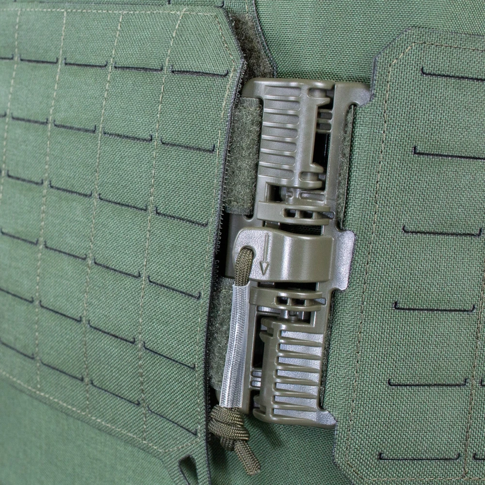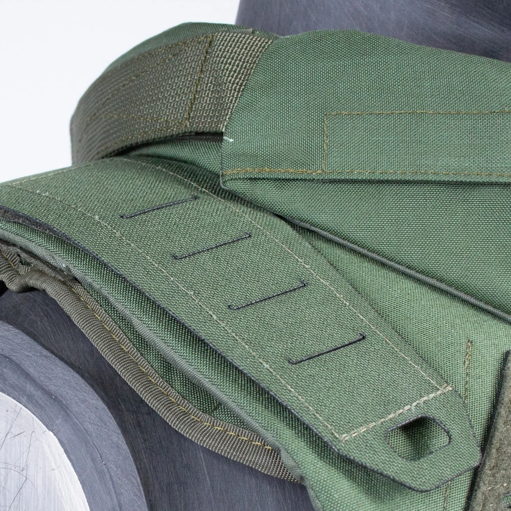 Жилет «ЩИТ» с самосбросом оборудован комплектом противопульной и противоосколочной защиты, которая представляет собой баллистические пакеты из СВМПЭ, пакеты в ходе проводимых сертификационных испытаний показали высокий результат V50% непробития поражающих элементов на скорости до 550 м/с. Класс защиты C2. Данный результат подтвержден сертификатом государственного образца № POCC RU. C308.H05485. Внимание! Любые самостоятельные изменения (вскрытие, надрезы, обрезка под другие размеры) аннулирует действие сертификата, и ведет к потере заявленных характеристик. Жилет "Щит" предназначен для обеспечения максимальной защиты от осколков своего владельца, а также имеет возможность установки противопульных плит для обеспечения полной защиты. В отличии от плитоносца, жилет ЩИТ дает полную защиту от осколков, включая шею, бока, надплечье, низ живота. Площадь покрытия тела броней: Щит 1-й размер S= 46,22 дм2 Щит 2-й размер S= 50,38 дм2 Баллистический функционал жилета может быть расширен путем установки дополнительного снаряжения, такого как напашник и наплечники (докупаются отдельно). Большая часть поверхности жилета представляет из себя платформу molle-minus, которая позволяет разместить на нем дополнительные подсумки и снаряжение. На внутренней стороне жилета располагаются климатические панели, обеспечивающие комфортную носку даже в жаркое время года. При желании, владелец может заменить их на КАП(докупаются дополнительно). На спине пришита ручка для эвакуации раненого или транспортировки изделия. Велкро-панели на внешней стороне могут использоваться для крепления опознавательных знаков.
